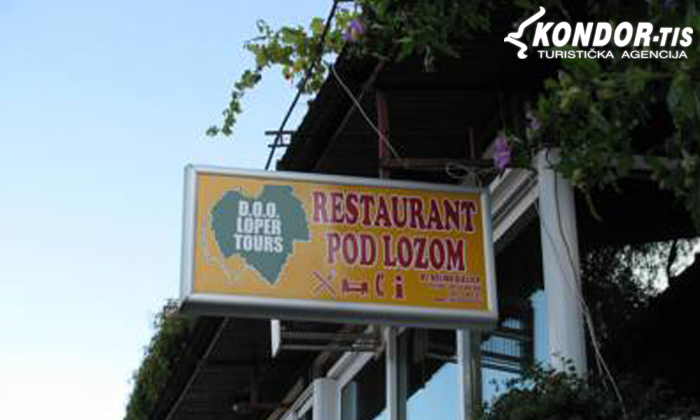 Mogućnost doplate za ishranu u restoranu “Pod Lozom”. Polupansion 12 e za odrasle, 9 eura za decu.